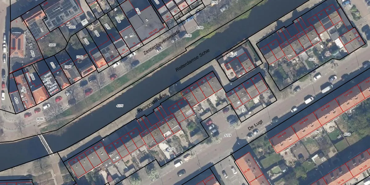 Het adres ligt op het perceel OVS00-C-5216, dat zich in de kadastrale gemeente Overschie bevindt. Het perceel is met 2934 m² relatief groot. Het gemiddelde ligt in de kadastrale gemeente Overschie op 2519,31 m². Het kleinste perceel in de kadastrale gemeente is 0 m² groot. De grootste perceeloppervlakte is 80,2 ha. Er zijn 30 adressen aanwezig op het perceel. De laatste wijziging in het de Basisregistratie Kadaster (BRK) was op 14-04-2010.