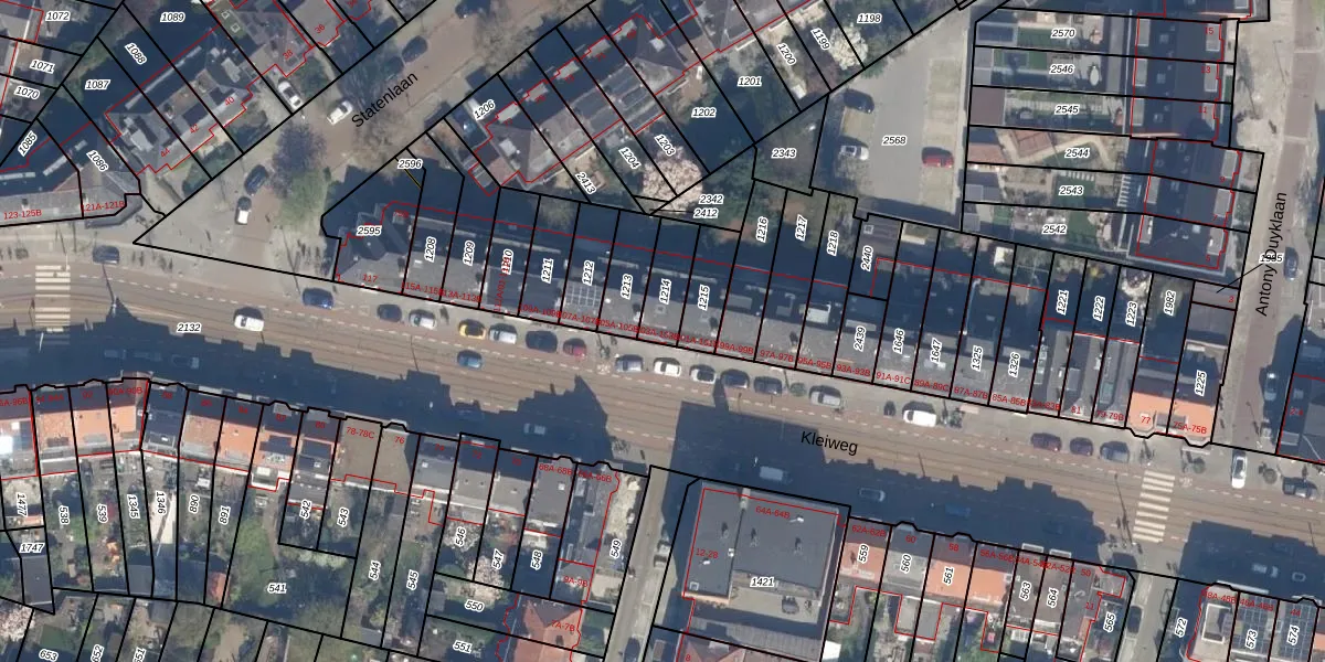 Kleiweg 103-A is gelegen op kadastraal perceel HLG03G1214. Deze kadastrale aanduiding is uniek en wordt gebruikt door het Kadaster om eigendomsrechten en andere zakelijke rechten vast te leggen. Het perceel maakt onderdeel uit van de kadastrale gemeente Hillegersberg.