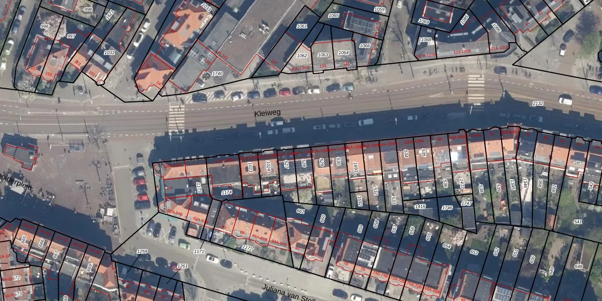 Kleiweg 114-A is gelegen op kadastraal perceel HLG03H528. Deze kadastrale aanduiding is uniek en wordt gebruikt door het Kadaster om eigendomsrechten en andere zakelijke rechten vast te leggen. Het perceel maakt onderdeel uit van de kadastrale gemeente Hillegersberg.