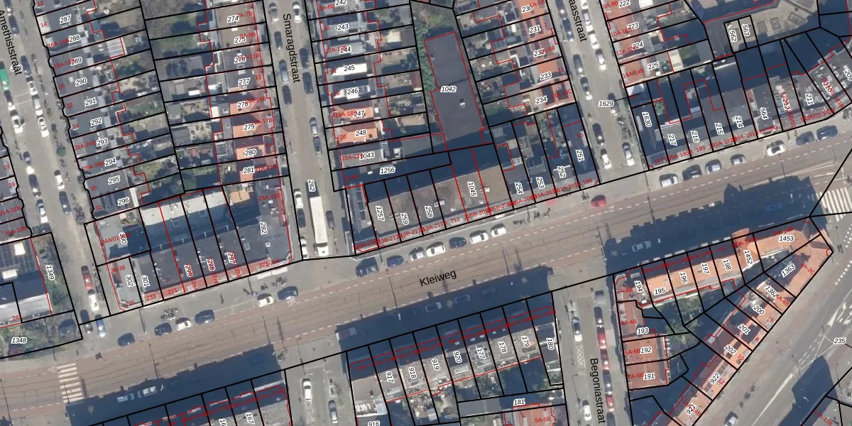Kleiweg 215-A is gelegen op kadastraal perceel SBK01D258. Deze kadastrale aanduiding is uniek en wordt gebruikt door het Kadaster om eigendomsrechten en andere zakelijke rechten vast te leggen. Het perceel maakt onderdeel uit van de kadastrale gemeente Schiebroek.