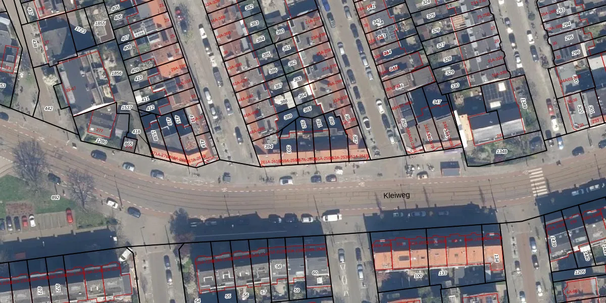 Kleiweg 257-B is gelegen op kadastraal perceel SBK01D392. Deze kadastrale aanduiding is uniek en wordt gebruikt door het Kadaster om eigendomsrechten en andere zakelijke rechten vast te leggen. Het perceel maakt onderdeel uit van de kadastrale gemeente Schiebroek.