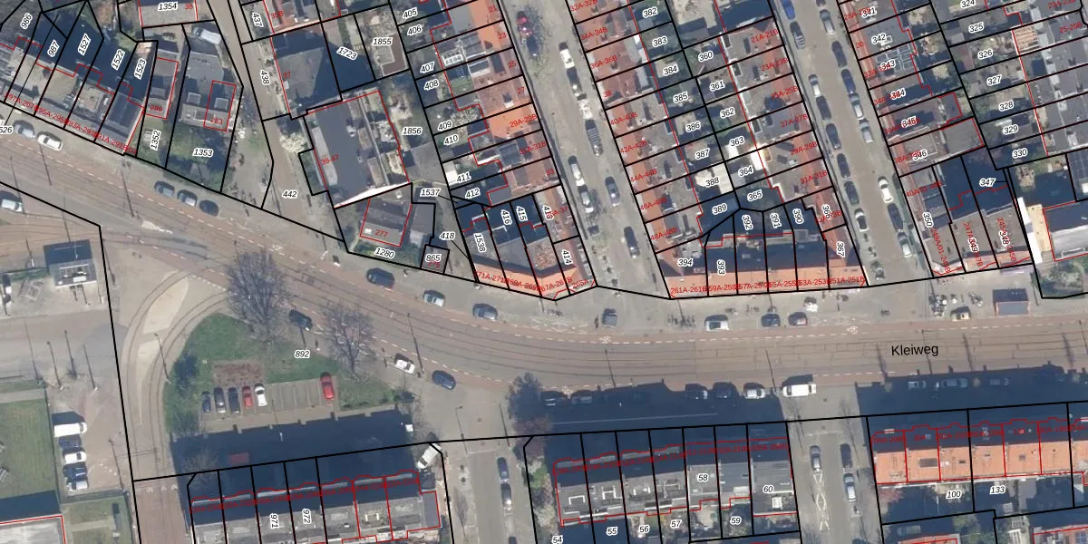 Kleiweg 267-B is gelegen op kadastraal perceel SBK01D415. Deze kadastrale aanduiding is uniek en wordt gebruikt door het Kadaster om eigendomsrechten en andere zakelijke rechten vast te leggen. Het perceel maakt onderdeel uit van de kadastrale gemeente Schiebroek.