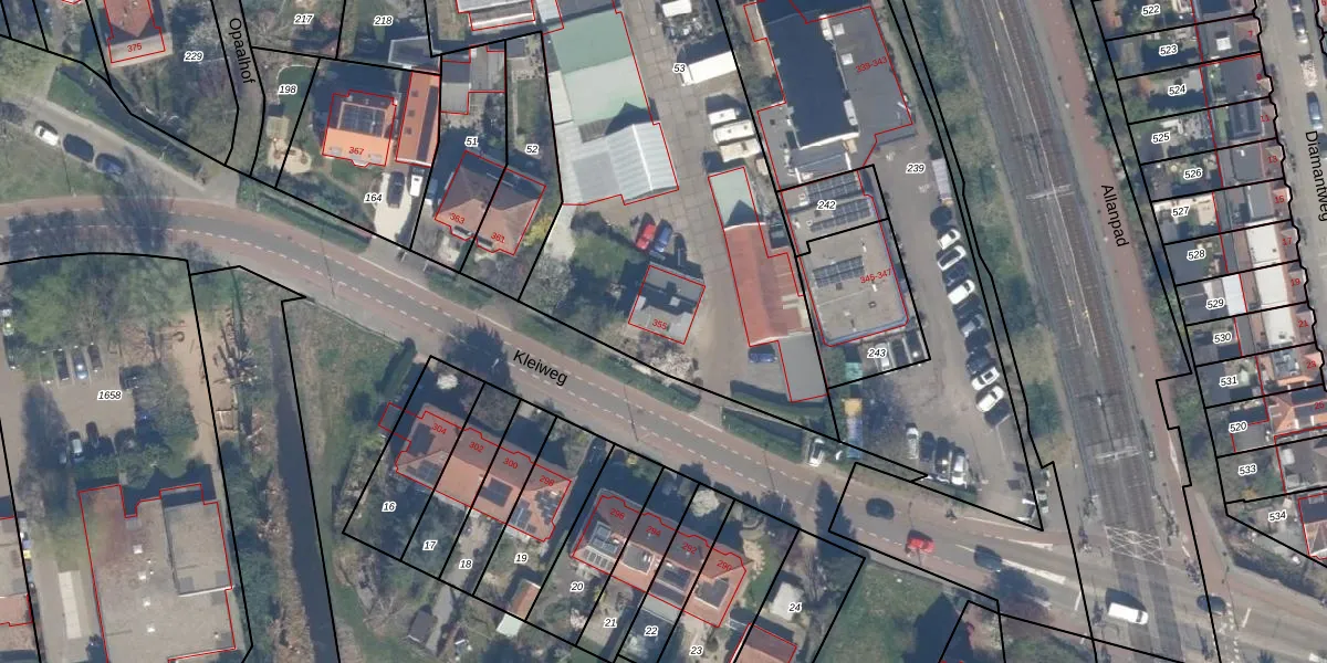 Kleiweg 355 is gelegen op kadastraal perceel SBK01E53. Deze kadastrale aanduiding is uniek en wordt gebruikt door het Kadaster om eigendomsrechten en andere zakelijke rechten vast te leggen. Het perceel maakt onderdeel uit van de kadastrale gemeente Schiebroek.