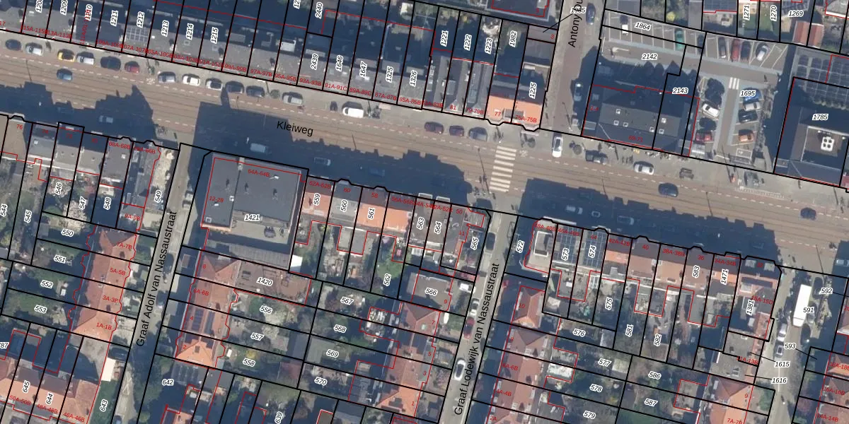 Kleiweg 54-B is gelegen op kadastraal perceel HLG03H563. Deze kadastrale aanduiding is uniek en wordt gebruikt door het Kadaster om eigendomsrechten en andere zakelijke rechten vast te leggen. Het perceel maakt onderdeel uit van de kadastrale gemeente Hillegersberg.