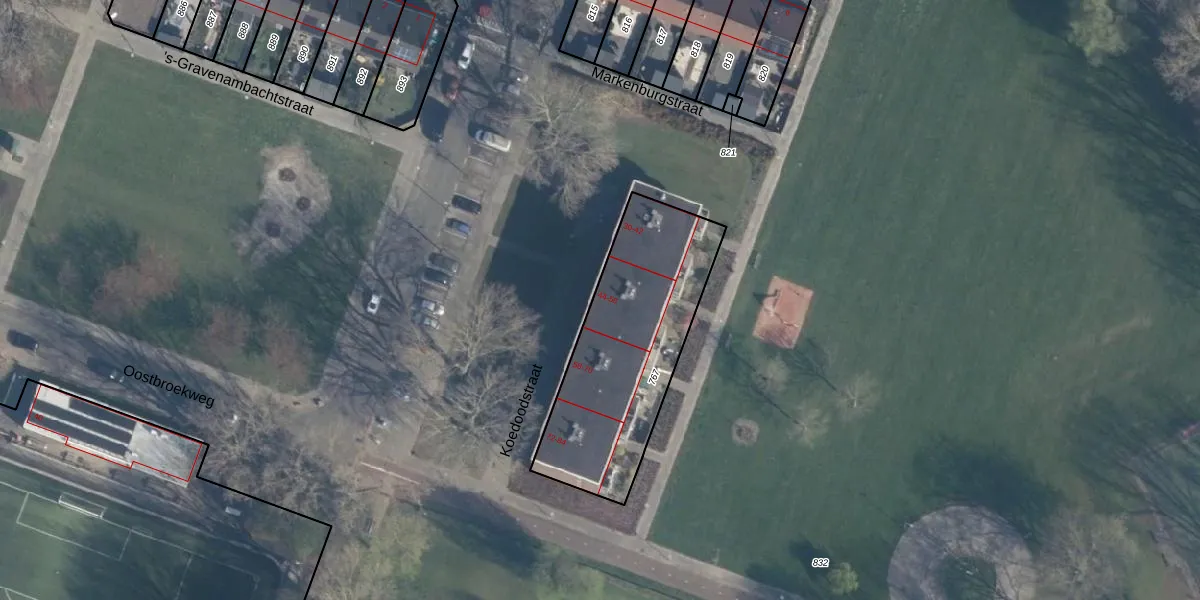 Het perceel waarop Koedoodstraat 46 staat heeft een oppervlakte van 830 m². Dit is een groot perceel. De perceeloppervlakte wordt geregistreerd door het Kadaster. Gedetailleerde informatie over de maten van dit perceel kunt u vinden in het rapport Kadastrale kaart met maatvoering van Koedoodstraat 46.