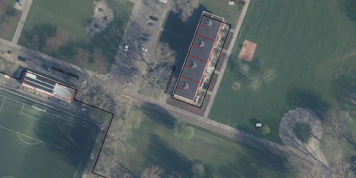 Het perceel waarop Koedoodstraat 72 staat heeft een oppervlakte van 830 m². Dit is een groot perceel. De perceeloppervlakte wordt geregistreerd door het Kadaster. Gedetailleerde informatie over de maten van dit perceel kunt u vinden in het rapport Kadastrale kaart met maatvoering van Koedoodstraat 72.