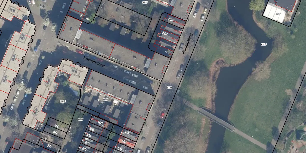 Het perceel waarop Koenenstraat 1 staat heeft een oppervlakte van 2630 m². Dit is een zeer groot perceel. De perceeloppervlakte wordt geregistreerd door het Kadaster. Gedetailleerde informatie over de maten van dit perceel kunt u vinden in het rapport Kadastrale kaart met maatvoering van Koenenstraat 1.