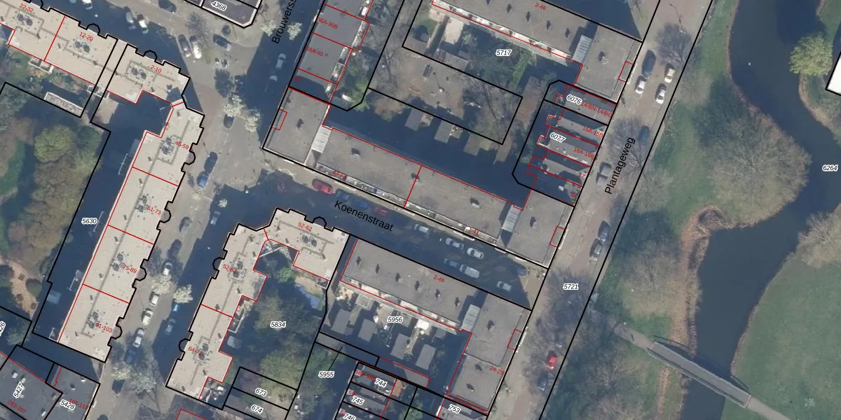 Het perceel waarop Koenenstraat 41 staat heeft een oppervlakte van 2630 m². Dit is een zeer groot perceel. De perceeloppervlakte wordt geregistreerd door het Kadaster. Gedetailleerde informatie over de maten van dit perceel kunt u vinden in het rapport Kadastrale kaart met maatvoering van Koenenstraat 41.