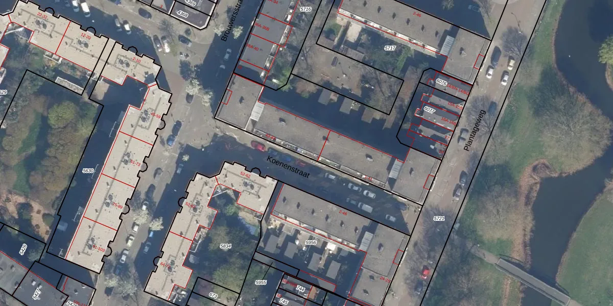 Het perceel waarop Koenenstraat 43 staat heeft een oppervlakte van 2630 m². Dit is een zeer groot perceel. De perceeloppervlakte wordt geregistreerd door het Kadaster. Gedetailleerde informatie over de maten van dit perceel kunt u vinden in het rapport Kadastrale kaart met maatvoering van Koenenstraat 43.