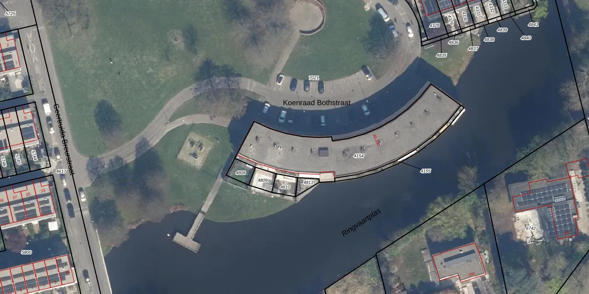 Het perceel waarop Koenraad Bothstraat 96 staat heeft een oppervlakte van 1010 m². Dit is een zeer groot perceel. De perceeloppervlakte wordt geregistreerd door het Kadaster. Gedetailleerde informatie over de maten van dit perceel kunt u vinden in het rapport Kadastrale kaart met maatvoering van Koenraad Bothstraat 96.