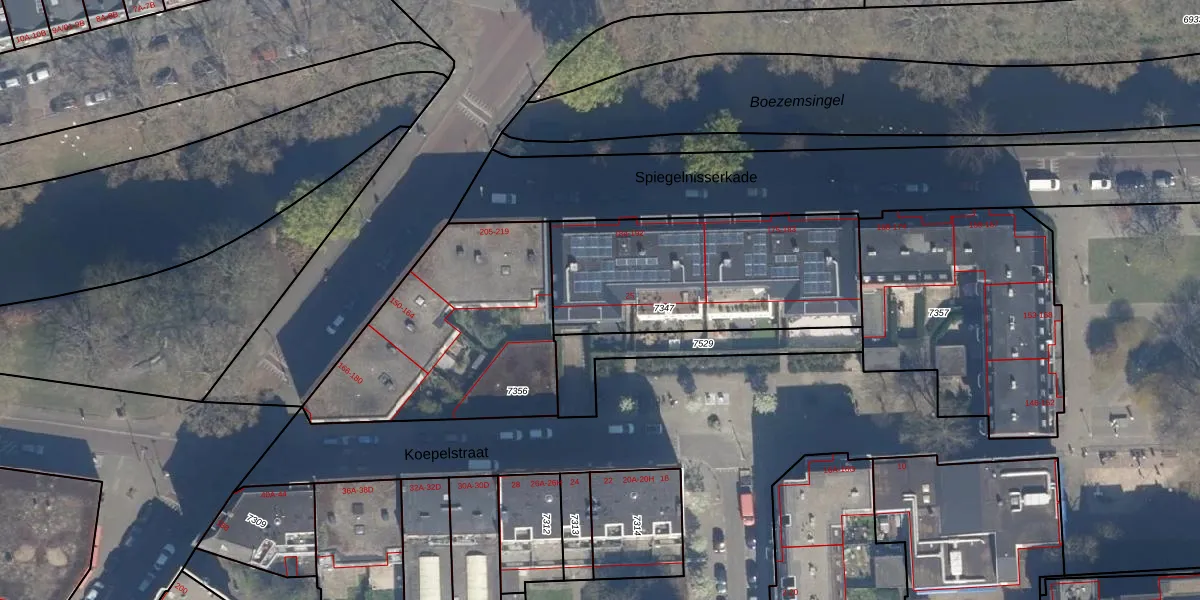 Het adres ligt op het perceel RTD07-R-7347, dat zich in de kadastrale gemeente Rotterdam bevindt. De oppervlakte van het perceel is 928 m². Dat is groter dan gemiddeld in Rotterdam, waar de gemiddelde perceeloppervlakte op 506,86 m² ligt. Het grootste perceel in de kadastrale gemeente is 10,8 ha. Het kleinste perceel heeft een oppervlakte van 0 m². Op het perceel liggen in totaal 19 adressen. De laatste wijziging in het de Basisregistratie Kadaster (BRK) was op 21-12-2004.