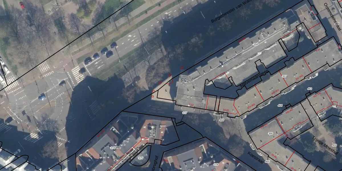 Het perceel waarop Koestraat 12 staat heeft een oppervlakte van 2075 m². Dit is een zeer groot perceel. De perceeloppervlakte wordt geregistreerd door het Kadaster. Gedetailleerde informatie over de maten van dit perceel kunt u vinden in het rapport Kadastrale kaart met maatvoering van Koestraat 12.