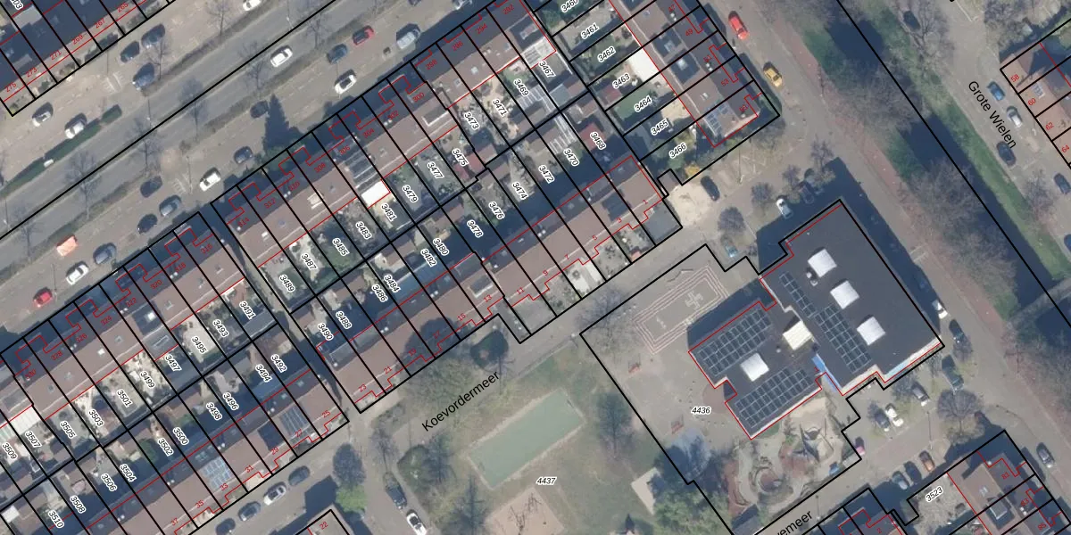 Koevordermeer 9 is gelegen op kadastraal perceel RTD13BA3476. Deze kadastrale aanduiding is uniek en wordt gebruikt door het Kadaster om eigendomsrechten en andere zakelijke rechten vast te leggen. Het perceel maakt onderdeel uit van de kadastrale gemeente Rotterdam.