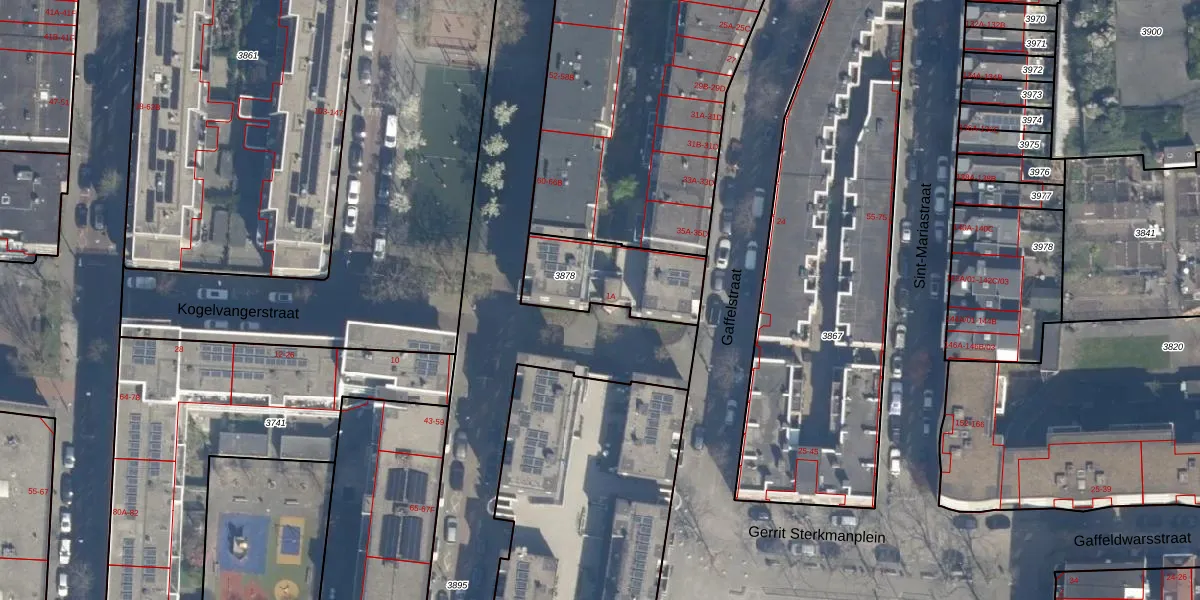Kogelvangerstraat 1-A is gelegen op kadastraal perceel DHV00D3878. Deze kadastrale aanduiding is uniek en wordt gebruikt door het Kadaster om eigendomsrechten en andere zakelijke rechten vast te leggen. Het perceel maakt onderdeel uit van de kadastrale gemeente Delfshaven.