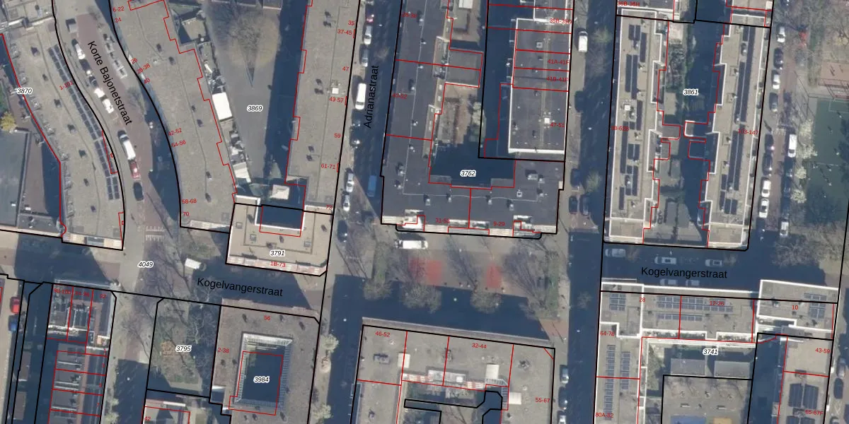 Kogelvangerstraat 53 is gelegen op kadastraal perceel DHV00D3762. Deze kadastrale aanduiding is uniek en wordt gebruikt door het Kadaster om eigendomsrechten en andere zakelijke rechten vast te leggen. Het perceel maakt onderdeel uit van de kadastrale gemeente Delfshaven.