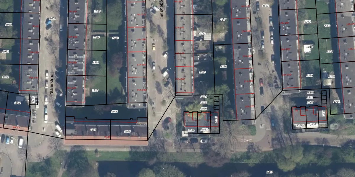 Het adres ligt op het perceel RTD10-AA-1385, dat zich in de kadastrale gemeente Rotterdam bevindt. Het perceel is kleiner dan gemiddeld in Rotterdam. Het perceel is 523 m² groot, terwijl het gemiddelde ligt op 1602,8 m². Het kleinste perceel in de kadastrale gemeente is 0 m² groot. De grootste perceeloppervlakte is 30,3 ha. Op het perceel zijn 12 adressen aanwezig. De huidige grenzen van het perceel zijn digitaal in de Basisregistratie Kadaster (BRK) geregistreerd op 27-01-2003.