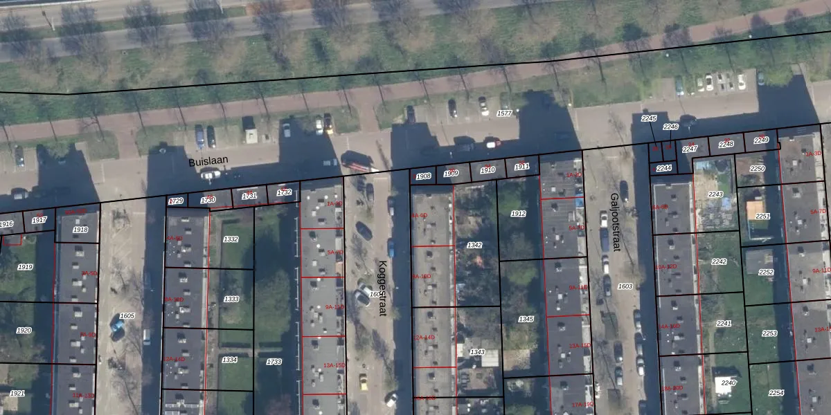 Het perceel waarop Koggestraat 4-C staat heeft een oppervlakte van 627 m². Dit is een groot perceel. De perceeloppervlakte wordt geregistreerd door het Kadaster. Gedetailleerde informatie over de maten van dit perceel kunt u vinden in het rapport Kadastrale kaart met maatvoering van Koggestraat 4-C.