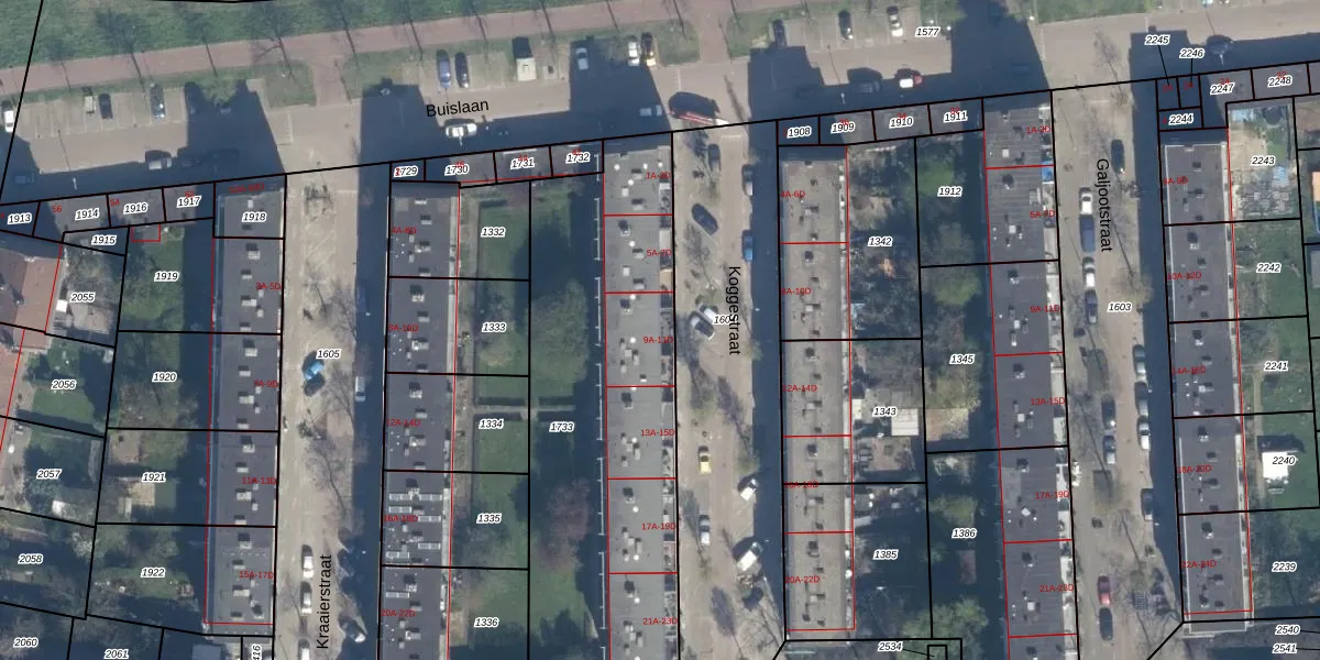 Koggestraat 9-B is gelegen op kadastraal perceel RTD10AA1733. Deze kadastrale aanduiding is uniek en wordt gebruikt door het Kadaster om eigendomsrechten en andere zakelijke rechten vast te leggen. Het perceel maakt onderdeel uit van de kadastrale gemeente Rotterdam.