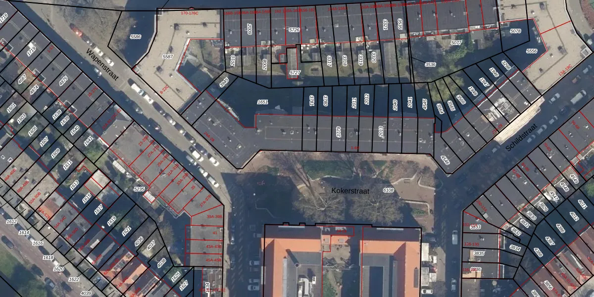 Kokerstraat 49 is gelegen op kadastraal perceel CLS00G1651. Deze kadastrale aanduiding is uniek en wordt gebruikt door het Kadaster om eigendomsrechten en andere zakelijke rechten vast te leggen. Het perceel maakt onderdeel uit van de kadastrale gemeente Charlois.