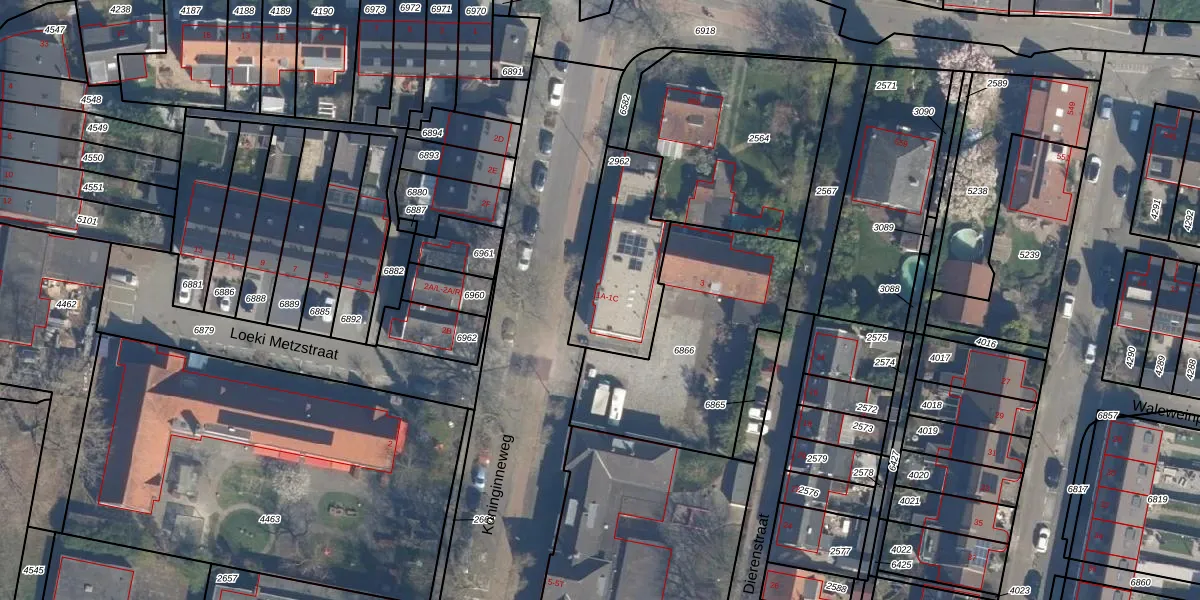 Het perceel waarop Koninginneweg 1-B staat heeft een oppervlakte van 402 m². Dit is een groot perceel. De perceeloppervlakte wordt geregistreerd door het Kadaster. Gedetailleerde informatie over de maten van dit perceel kunt u vinden in het rapport Kadastrale kaart met maatvoering van Koninginneweg 1-B.
