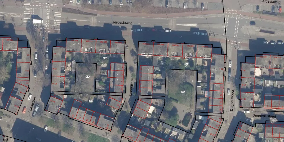 Het adres ligt op het perceel RTD04-AE-807, dat zich in de kadastrale gemeente Rotterdam bevindt. Het perceel is met 2078 m² relatief groot. Het gemiddelde ligt in de kadastrale gemeente Rotterdam op 1239,97 m². De grootste perceeloppervlakte in de kadastrale gemeente is 17,3 ha. De kleinste oppervlakte bedraagt 0 m². Er zijn 29 adressen aanwezig op het perceel. De laatste wijziging in het de Basisregistratie Kadaster (BRK) was op 12-05-2004.
