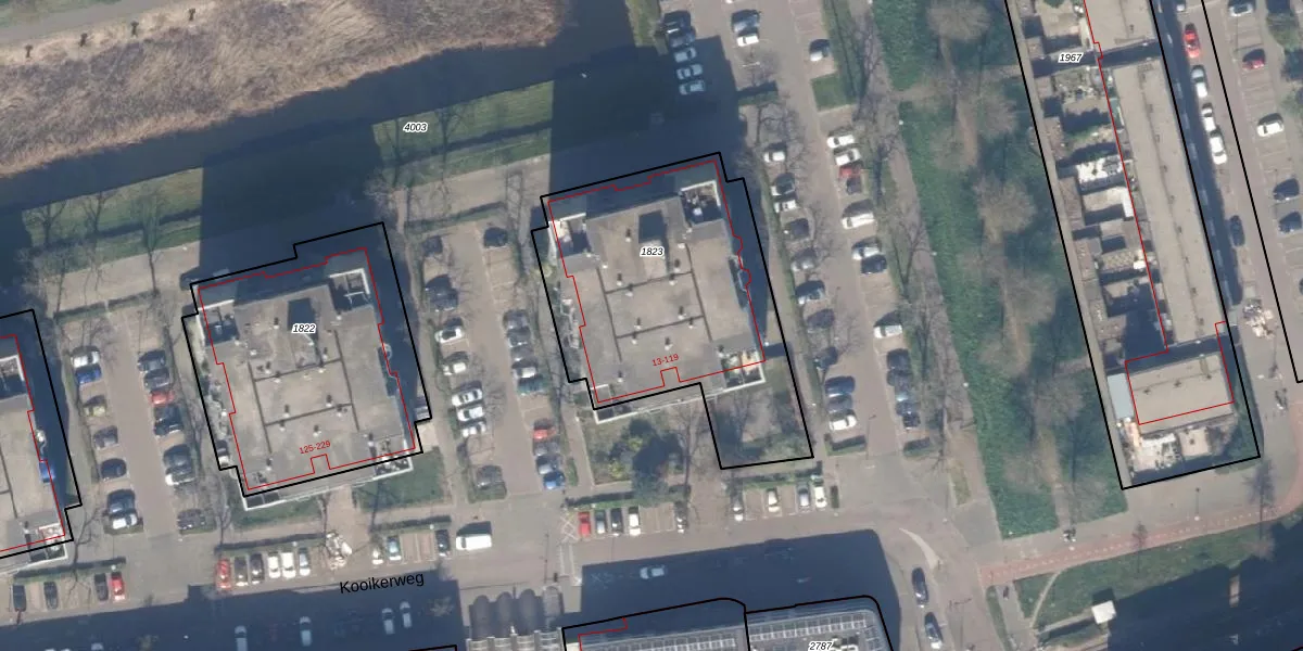 Kooikerweg 75 is gelegen op kadastraal perceel RTD13BA1823. Deze kadastrale aanduiding is uniek en wordt gebruikt door het Kadaster om eigendomsrechten en andere zakelijke rechten vast te leggen. Het perceel maakt onderdeel uit van de kadastrale gemeente Rotterdam.