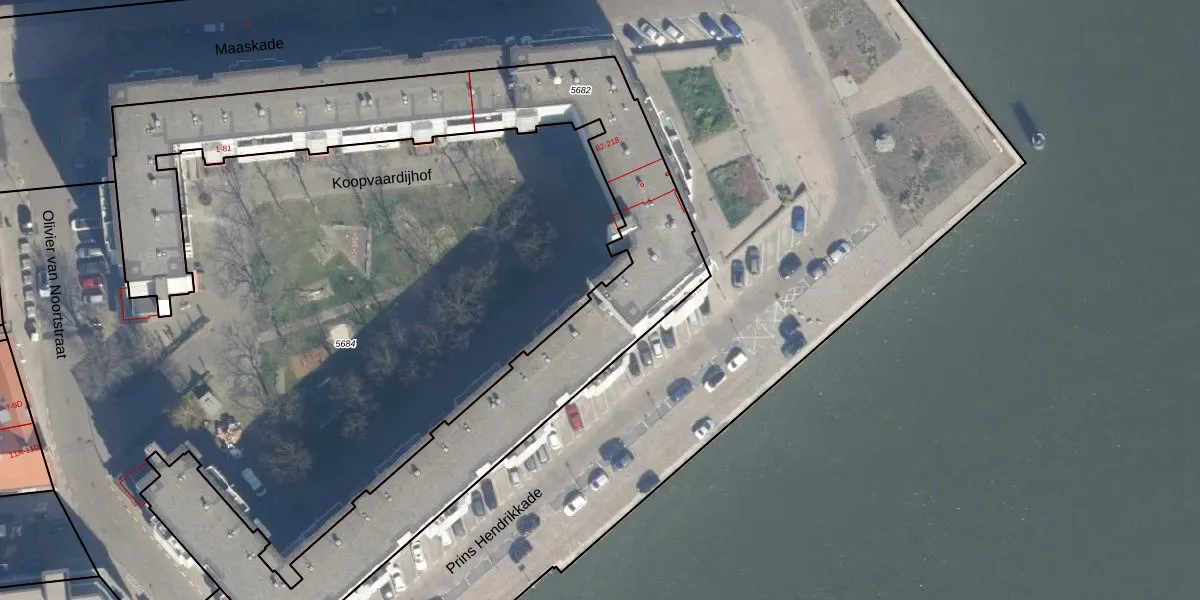 Het adres ligt op het perceel RTD05-Q-5682, dat zich in de kadastrale gemeente Rotterdam bevindt. De oppervlakte van het perceel is 2609 m². Dat is groter dan gemiddeld in Rotterdam, waar de gemiddelde perceeloppervlakte op 1401,79 m² ligt. Het grootste perceel in de kadastrale gemeente is 36,8 ha. Het kleinste perceel heeft een oppervlakte van 0 m². Op het perceel liggen in totaal 218 adressen. De laatste wijziging in het de Basisregistratie Kadaster (BRK) was op 20-10-2006.