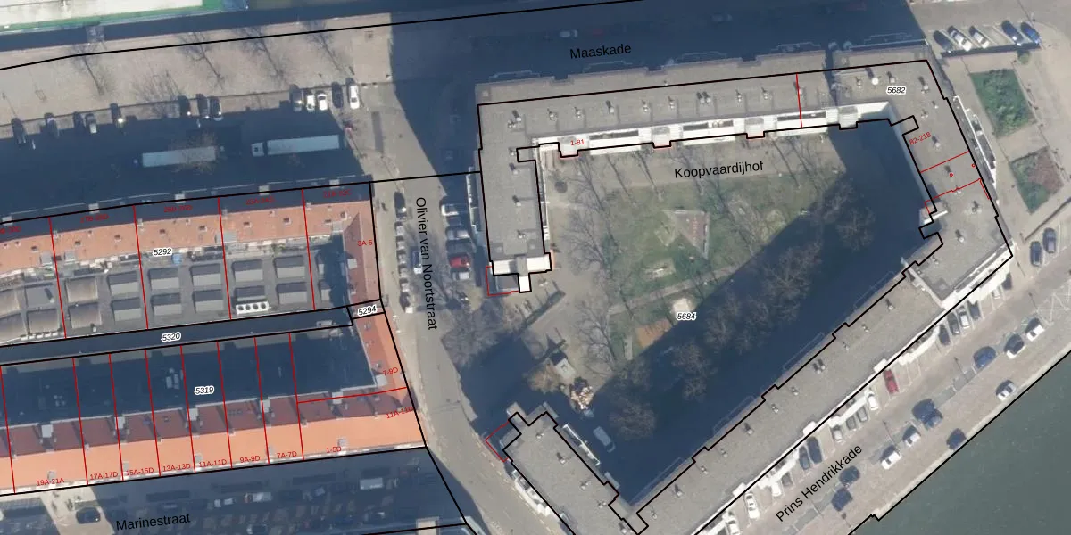Koopvaardijhof 2 is gelegen op kadastraal perceel RTD05Q5682. Deze kadastrale aanduiding is uniek en wordt gebruikt door het Kadaster om eigendomsrechten en andere zakelijke rechten vast te leggen. Het perceel maakt onderdeel uit van de kadastrale gemeente Rotterdam.