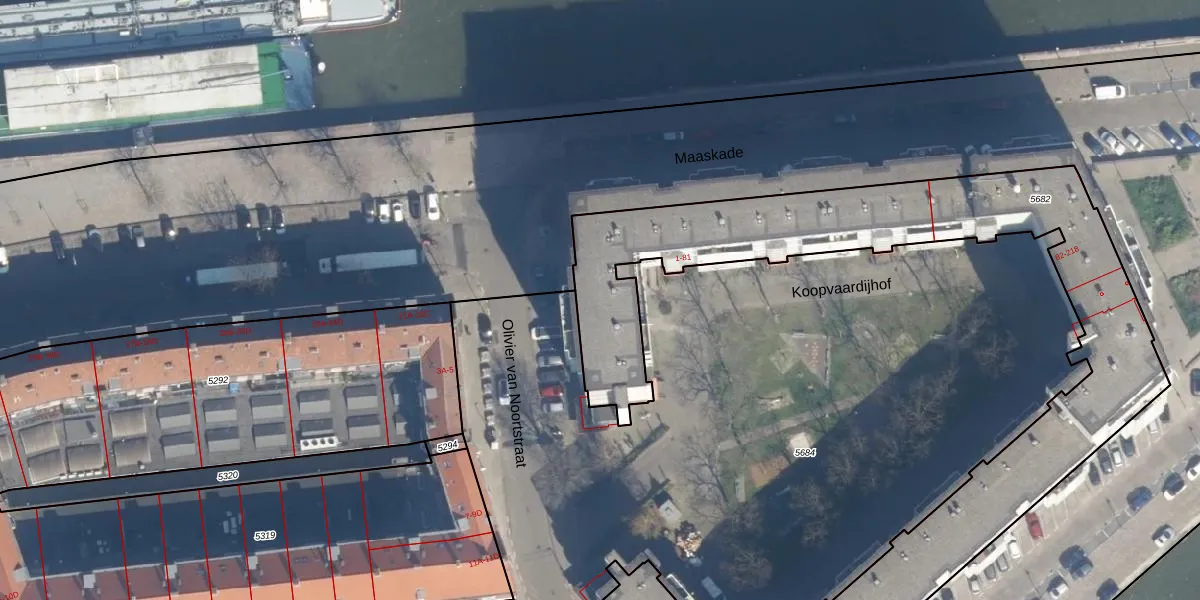 Het adres ligt op het perceel RTD05-Q-5682, dat zich in de kadastrale gemeente Rotterdam bevindt. De oppervlakte van het perceel is 2609 m². Dat is groter dan gemiddeld in Rotterdam, waar de gemiddelde perceeloppervlakte op 1401,79 m² ligt. Het grootste perceel in de kadastrale gemeente is 36,8 ha. Het kleinste perceel heeft een oppervlakte van 0 m². Op het perceel liggen in totaal 218 adressen. In de Basisregistratie Kadaster (BRK) werden de grenzen van het perceel geregistreerd op 20-10-2006.