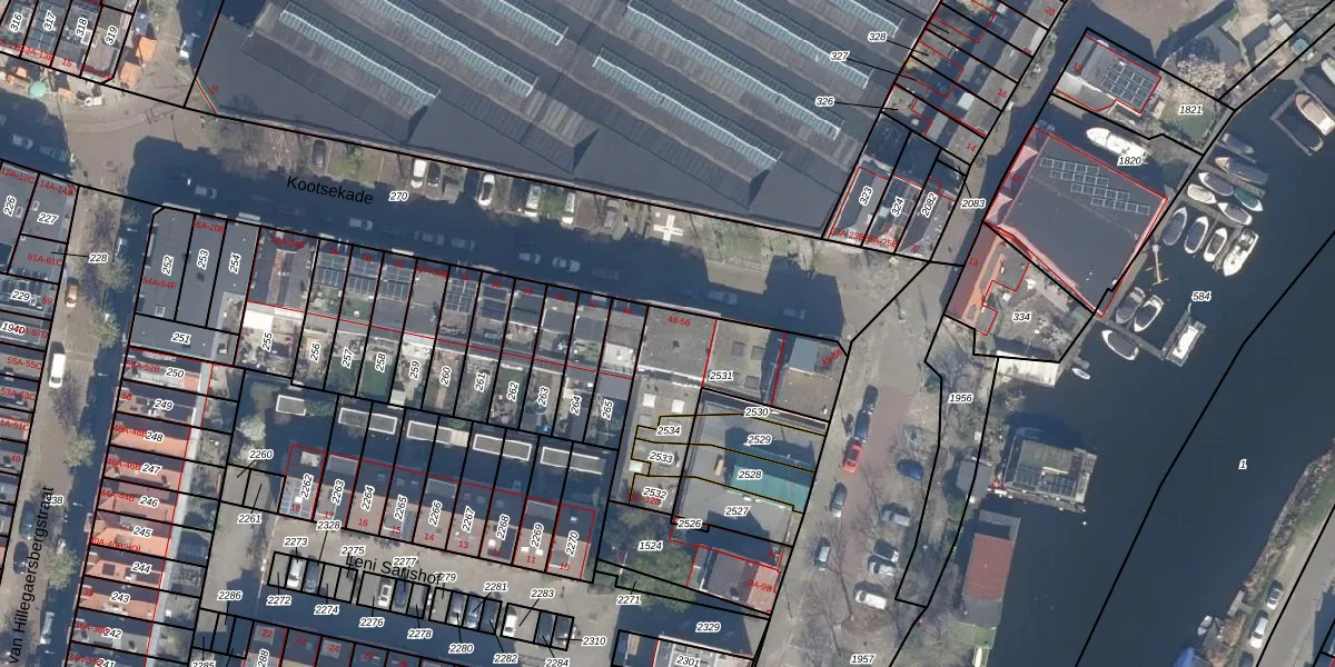Het perceel waarop Kootsekade 48 staat heeft een oppervlakte van 442 m². Dit is een groot perceel. De perceeloppervlakte wordt geregistreerd door het Kadaster. Gedetailleerde informatie over de maten van dit perceel kunt u vinden in het rapport Kadastrale kaart met maatvoering van Kootsekade 48.