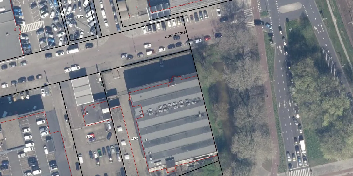 Het perceel waarop Koperstraat 6 staat heeft een oppervlakte van 3623 m². Dit is een zeer groot perceel. De perceeloppervlakte wordt geregistreerd door het Kadaster. Gedetailleerde informatie over de maten van dit perceel kunt u vinden in het rapport Kadastrale kaart met maatvoering van Koperstraat 6.