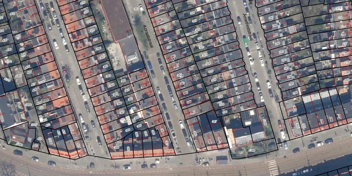 Het perceel waarop Koraalstraat 32-A staat heeft een oppervlakte van 89 m². Dit is een klein perceel. De perceeloppervlakte wordt geregistreerd door het Kadaster. Gedetailleerde informatie over de maten van dit perceel kunt u vinden in het rapport Kadastrale kaart met maatvoering van Koraalstraat 32-A.