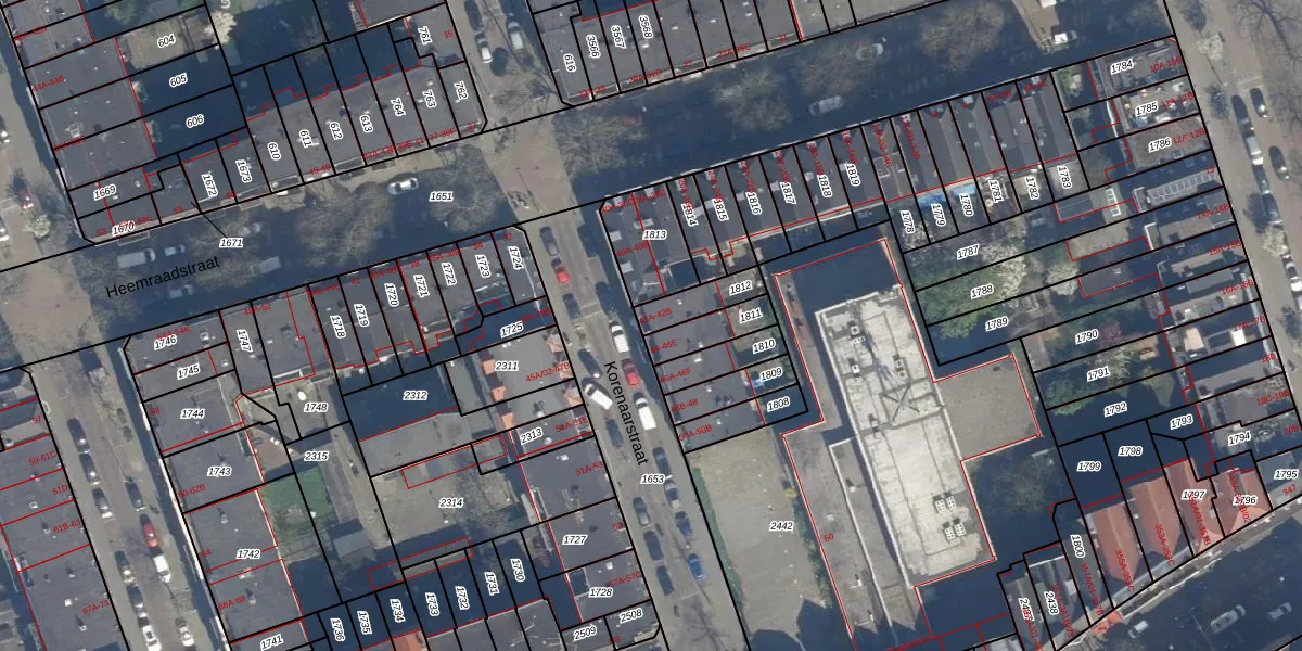 Het perceel waarop Korenaarstraat 42-B staat heeft een oppervlakte van 96 m². Dit is een klein perceel. De perceeloppervlakte wordt geregistreerd door het Kadaster. Gedetailleerde informatie over de maten van dit perceel kunt u vinden in het rapport Kadastrale kaart met maatvoering van Korenaarstraat 42-B.