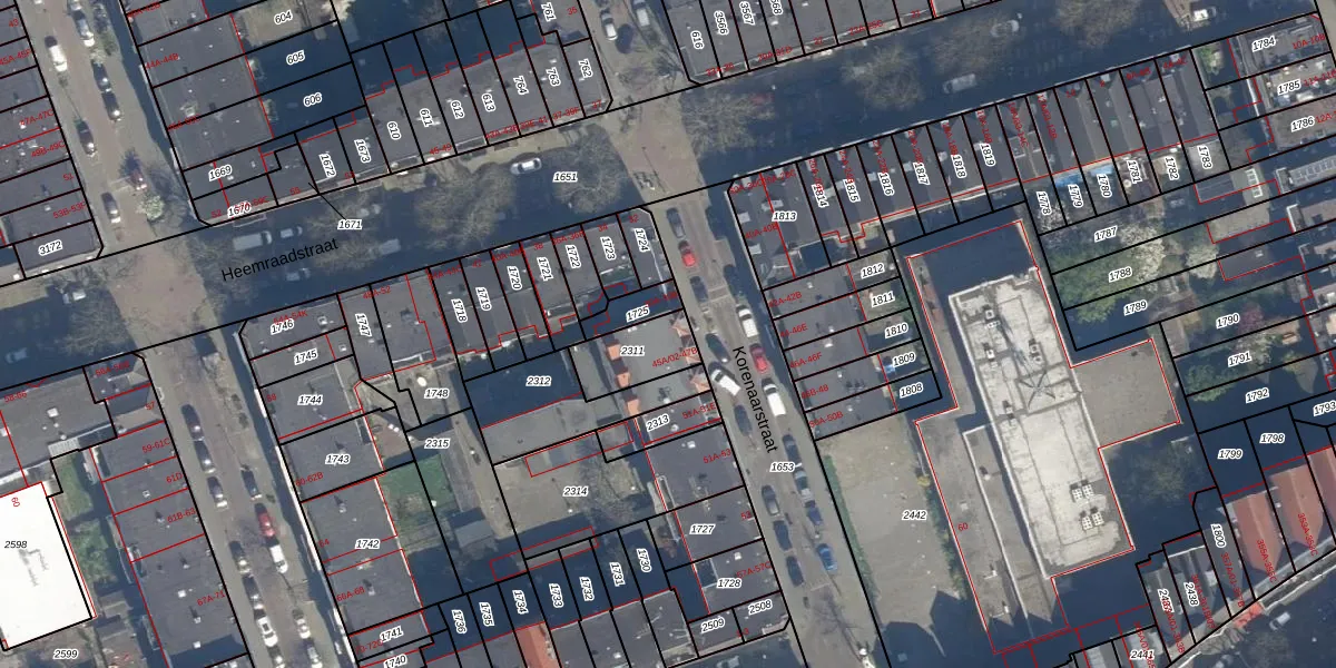Korenaarstraat 45-A-02 is gelegen op kadastraal perceel DHV00F2311. Deze kadastrale aanduiding is uniek en wordt gebruikt door het Kadaster om eigendomsrechten en andere zakelijke rechten vast te leggen. Het perceel maakt onderdeel uit van de kadastrale gemeente Delfshaven.