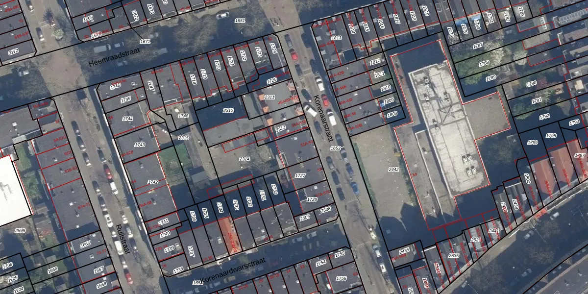 Het perceel waarop Korenaarstraat 51-C staat heeft een oppervlakte van 427 m². Dit is een groot perceel. De perceeloppervlakte wordt geregistreerd door het Kadaster. Gedetailleerde informatie over de maten van dit perceel kunt u vinden in het rapport Kadastrale kaart met maatvoering van Korenaarstraat 51-C.