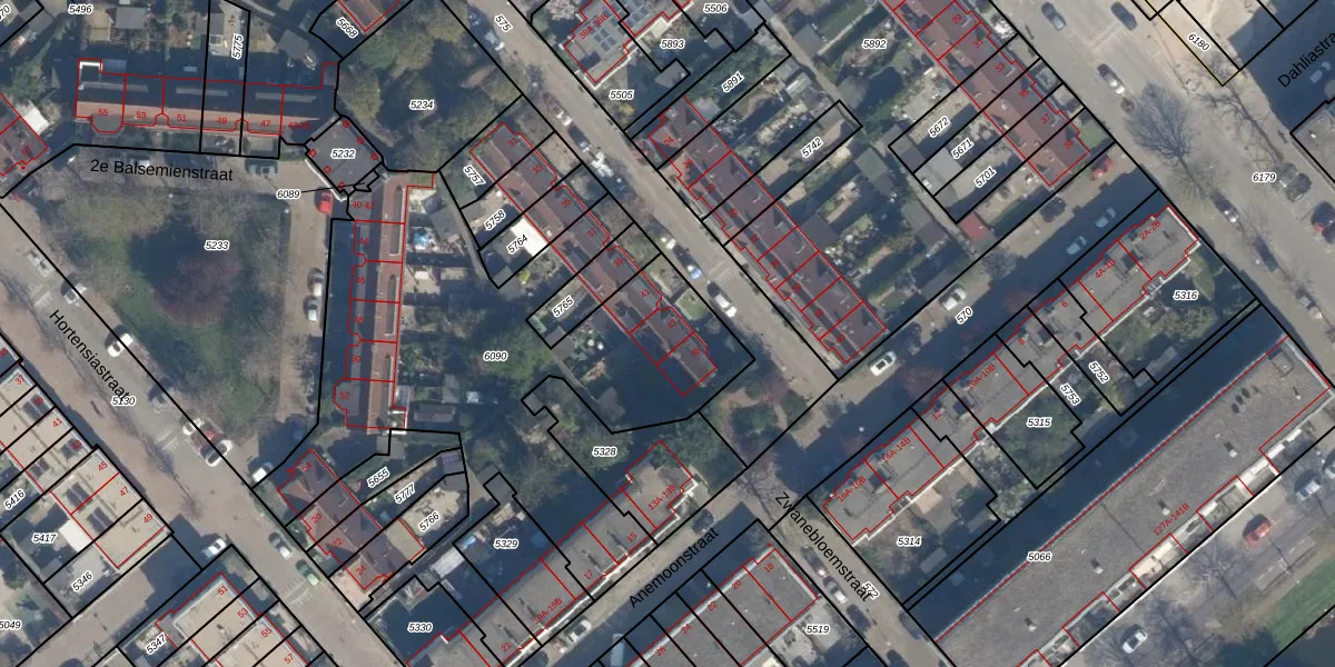 Korenbloemstraat 43 is gelegen op kadastraal perceel CLS00G6090. Deze kadastrale aanduiding is uniek en wordt gebruikt door het Kadaster om eigendomsrechten en andere zakelijke rechten vast te leggen. Het perceel maakt onderdeel uit van de kadastrale gemeente Charlois.