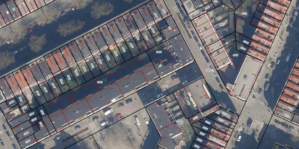 Het perceel waarop Korfmakersstraat 7-D staat heeft een oppervlakte van 1643 m². Dit is een zeer groot perceel. De perceeloppervlakte wordt geregistreerd door het Kadaster. Gedetailleerde informatie over de maten van dit perceel kunt u vinden in het rapport Kadastrale kaart met maatvoering van Korfmakersstraat 7-D.