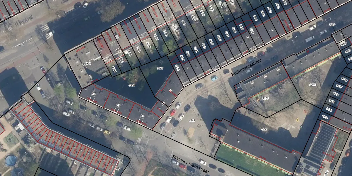Het perceel waarop Korfmakersstraat 93-B staat heeft een oppervlakte van 408 m². Dit is een groot perceel. De perceeloppervlakte wordt geregistreerd door het Kadaster. Gedetailleerde informatie over de maten van dit perceel kunt u vinden in het rapport Kadastrale kaart met maatvoering van Korfmakersstraat 93-B.
