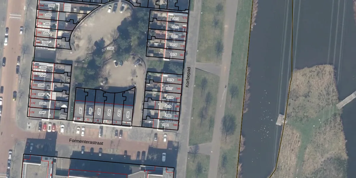 Het perceel waarop Korfoepad 185 staat heeft een oppervlakte van 104 m². Dit is een middelgroot perceel. De perceeloppervlakte wordt geregistreerd door het Kadaster. Gedetailleerde informatie over de maten van dit perceel kunt u vinden in het rapport Kadastrale kaart met maatvoering van Korfoepad 185.