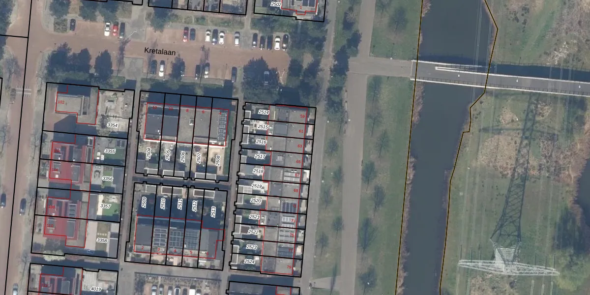 Gebruik de zoekbalk of klik op een perceel voor informatie over de adressen binnen dit perceel.