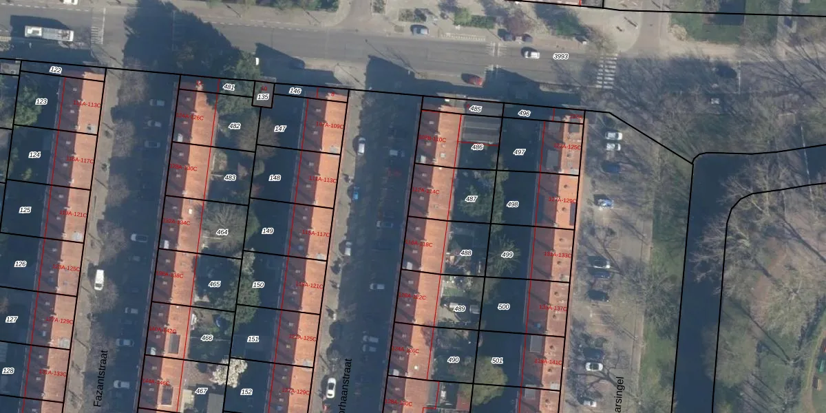 Korhaanstraat 114-A is gelegen op kadastraal perceel CLS00I487. Deze kadastrale aanduiding is uniek en wordt gebruikt door het Kadaster om eigendomsrechten en andere zakelijke rechten vast te leggen. Het perceel maakt onderdeel uit van de kadastrale gemeente Charlois.