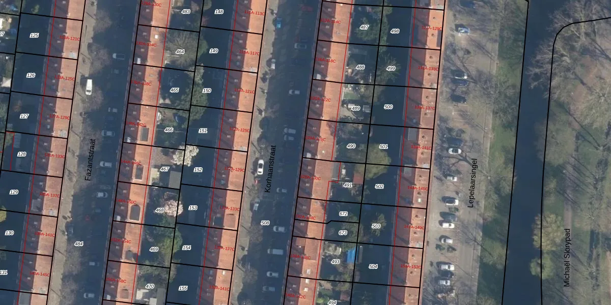 Korhaanstraat 126-A is gelegen op kadastraal perceel CLS00I490. Deze kadastrale aanduiding is uniek en wordt gebruikt door het Kadaster om eigendomsrechten en andere zakelijke rechten vast te leggen. Het perceel maakt onderdeel uit van de kadastrale gemeente Charlois.
