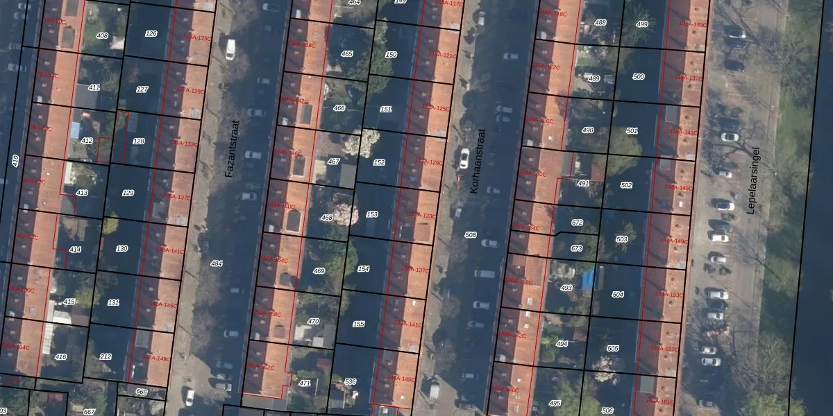 Korhaanstraat 131-B is gelegen op kadastraal perceel CLS00I153. Deze kadastrale aanduiding is uniek en wordt gebruikt door het Kadaster om eigendomsrechten en andere zakelijke rechten vast te leggen. Het perceel maakt onderdeel uit van de kadastrale gemeente Charlois.