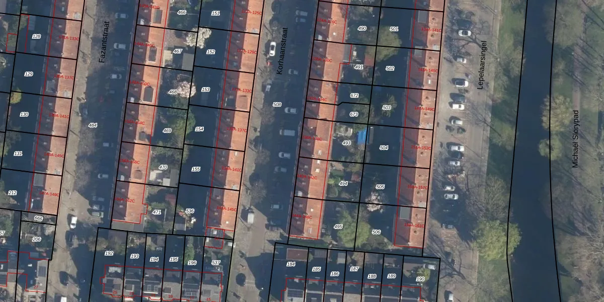 Korhaanstraat 138-C is gelegen op kadastraal perceel CLS00I493. Deze kadastrale aanduiding is uniek en wordt gebruikt door het Kadaster om eigendomsrechten en andere zakelijke rechten vast te leggen. Het perceel maakt onderdeel uit van de kadastrale gemeente Charlois.