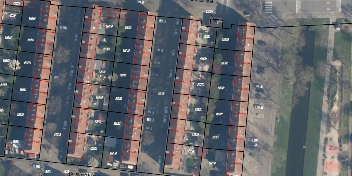 Korhaanstraat 54-A is gelegen op kadastraal perceel CLS00H2050. Deze kadastrale aanduiding is uniek en wordt gebruikt door het Kadaster om eigendomsrechten en andere zakelijke rechten vast te leggen. Het perceel maakt onderdeel uit van de kadastrale gemeente Charlois.