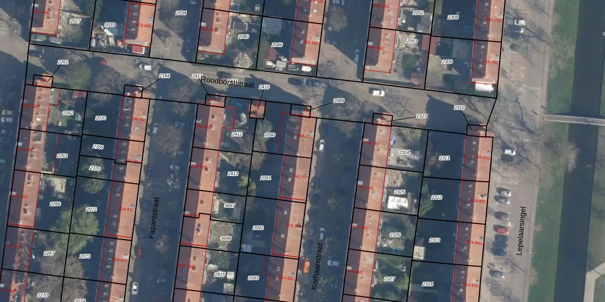 Korhaanstraat 71-C is gelegen op kadastraal perceel CLS00H2090. Deze kadastrale aanduiding is uniek en wordt gebruikt door het Kadaster om eigendomsrechten en andere zakelijke rechten vast te leggen. Het perceel maakt onderdeel uit van de kadastrale gemeente Charlois.