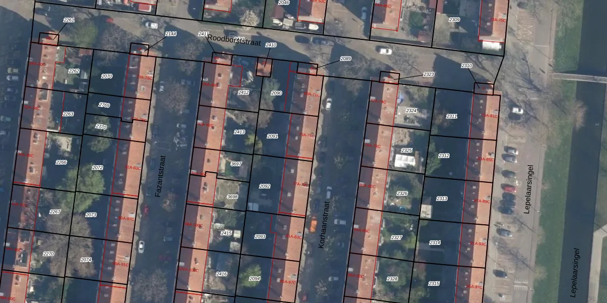 Korhaanstraat 75-C is gelegen op kadastraal perceel CLS00H2091. Deze kadastrale aanduiding is uniek en wordt gebruikt door het Kadaster om eigendomsrechten en andere zakelijke rechten vast te leggen. Het perceel maakt onderdeel uit van de kadastrale gemeente Charlois.