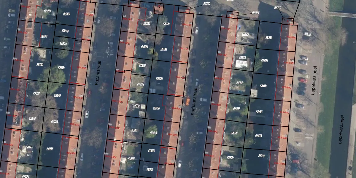 Korhaanstraat 79-C is gelegen op kadastraal perceel CLS00H2092. Deze kadastrale aanduiding is uniek en wordt gebruikt door het Kadaster om eigendomsrechten en andere zakelijke rechten vast te leggen. Het perceel maakt onderdeel uit van de kadastrale gemeente Charlois.