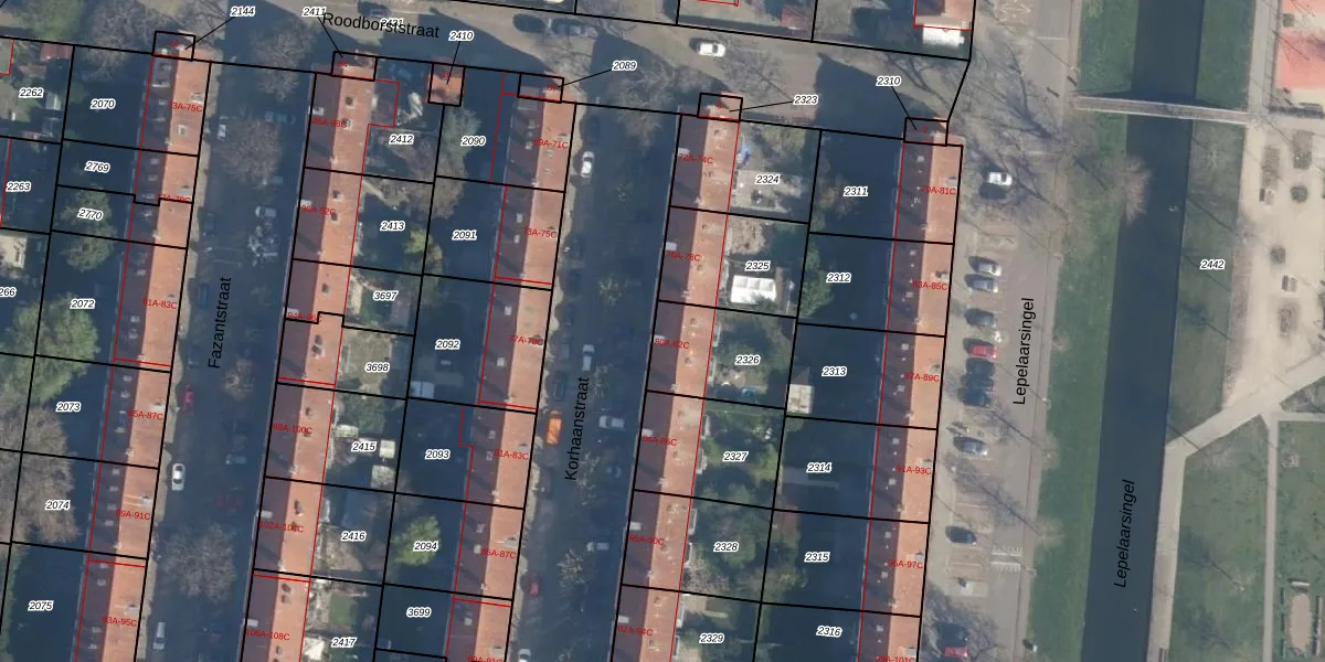Korhaanstraat 80-C is gelegen op kadastraal perceel CLS00H2326. Deze kadastrale aanduiding is uniek en wordt gebruikt door het Kadaster om eigendomsrechten en andere zakelijke rechten vast te leggen. Het perceel maakt onderdeel uit van de kadastrale gemeente Charlois.