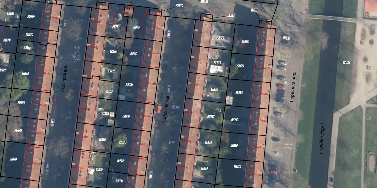 Korhaanstraat 82-A is gelegen op kadastraal perceel CLS00H2326. Deze kadastrale aanduiding is uniek en wordt gebruikt door het Kadaster om eigendomsrechten en andere zakelijke rechten vast te leggen. Het perceel maakt onderdeel uit van de kadastrale gemeente Charlois.